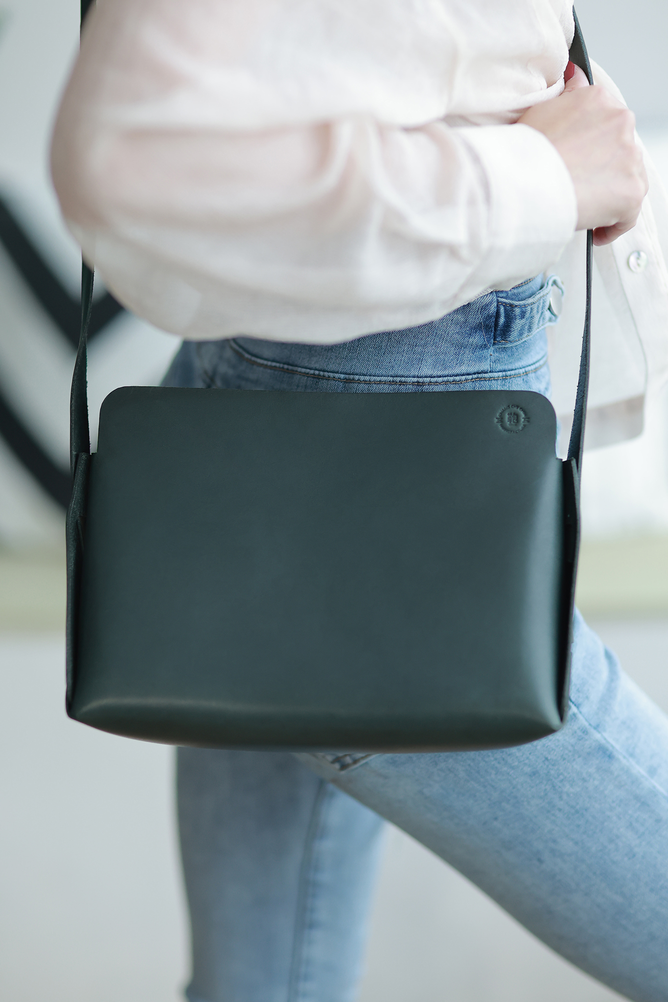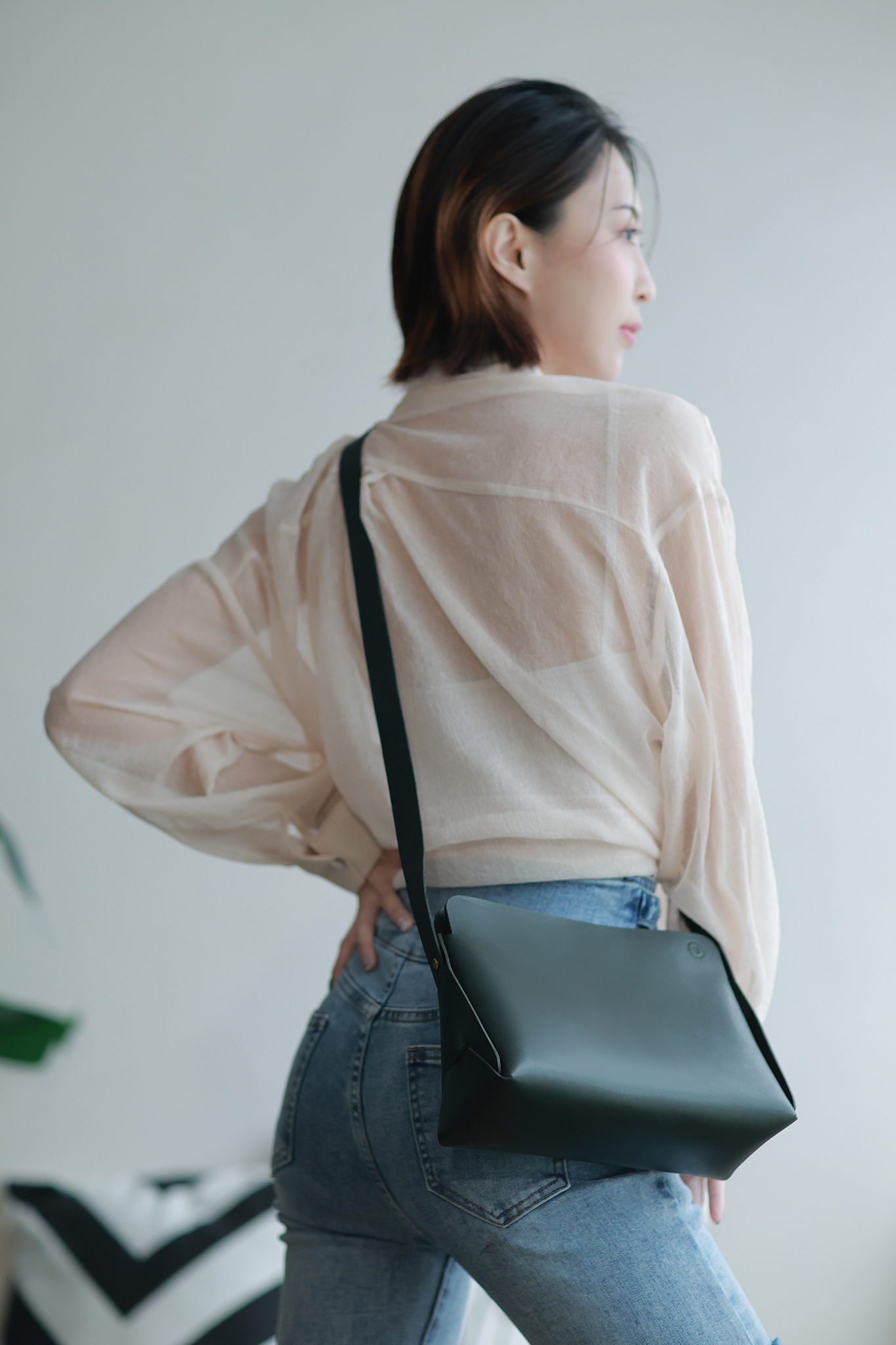 這是一款無需縫紉機,像摺紙一樣製作而成的無縫斜背包。 由厚實的單塊皮革製成,您可以在使用時享受皮革隨著時間的推移而融合和變化的過程,而不會撕裂。